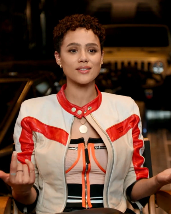Nathalie Emmanuel Fast X 2023 Ramsey White Leather Jacket With Red Stripes