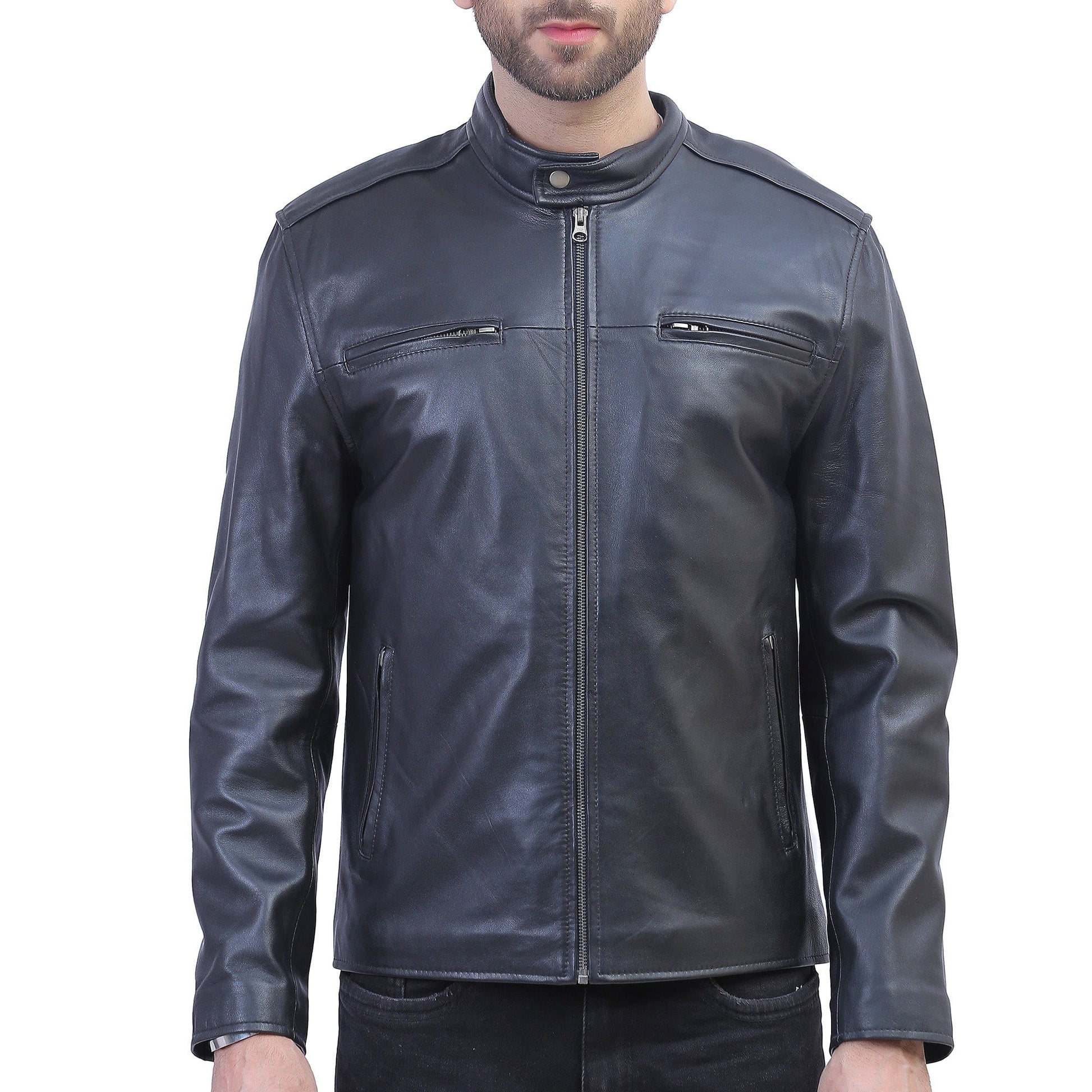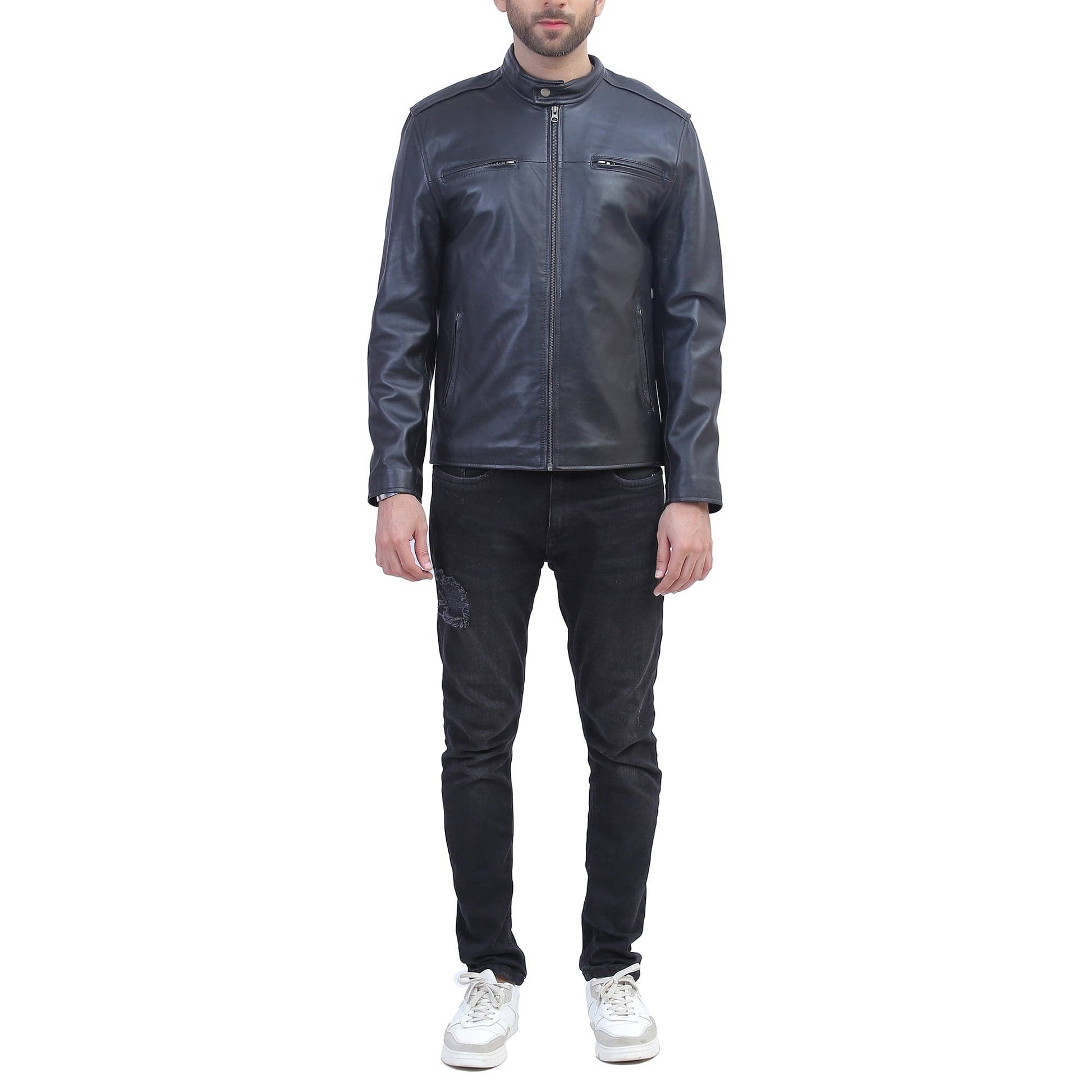 Cafe Racer Black Leather Jacket For Men