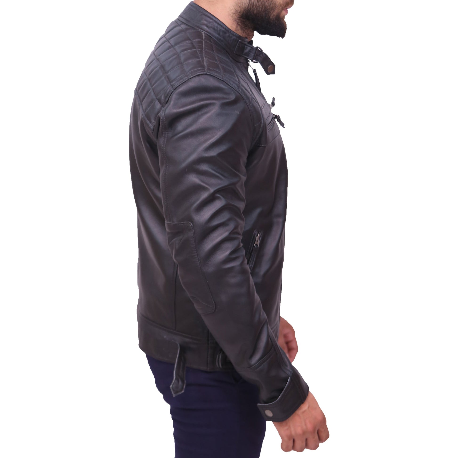 The Men's Cafe Racer Vintage Motorcycle Sheepskin Leather Jacket delivers rugged, classic biker style with premium comfort. Crafted from high-quality sheepskin leather, this black leather jacket offers durability and a sleek, vintage look. Its iconic cafe racer jacket design and timeless finish make it a perfect choice for riders and fashion enthusiasts alike. A standout piece among motorcycle leather jackets and vintage leather jackets, it combines style, comfort, and authenticity.
