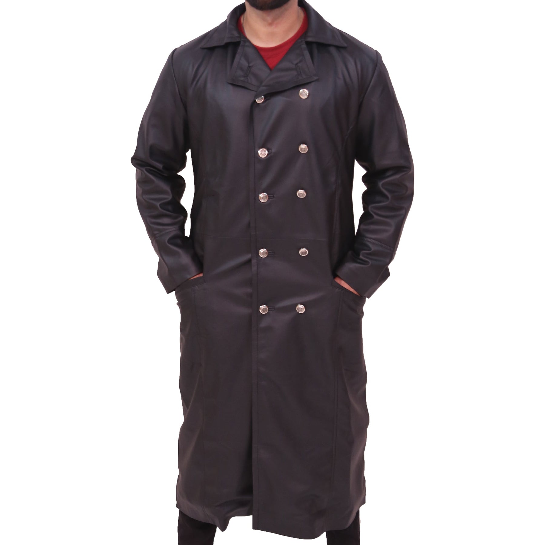 MEN'S CLASSIC OFFICER MILITARY BLACK GERMAN TRENCH COAT