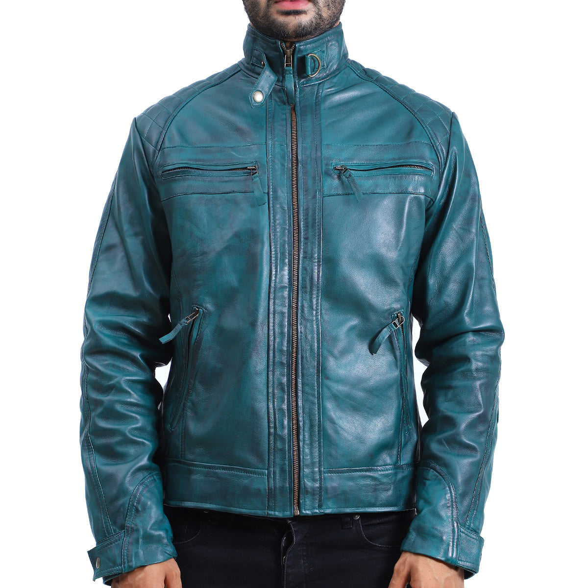 This Quilted Cafe Racer Jacket is crafted to perfection in a sexy greenish-blue color that just cools the eyes. It is particularly fashionable and sexy due to its bold and unique appearance. The color green is often associated with nature, growth, and vitality, while leather is a material that exudes toughness and durability. When combined, the result is a striking and alluring jacket that can enhance any outfit and make a powerful fashion statement. Whether you're riding a motorcycle or just looking to add a touch of edge to your wardrobe, this Cafe Racer Green Jacket is sure to turn heads and make you feel confident and stylish.