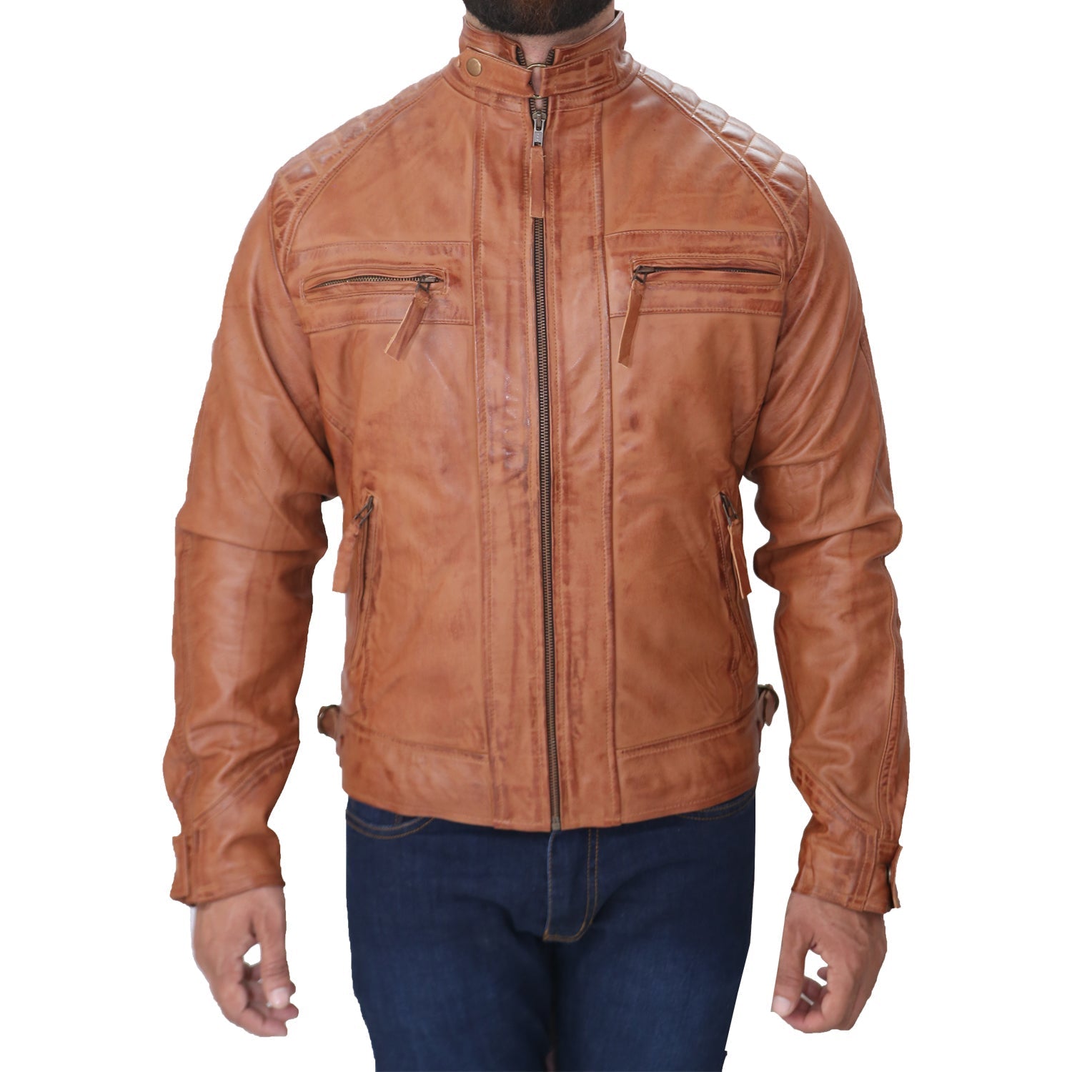 Men's Tan Biker Fashion Slim Fit Pure Leather Jacket
