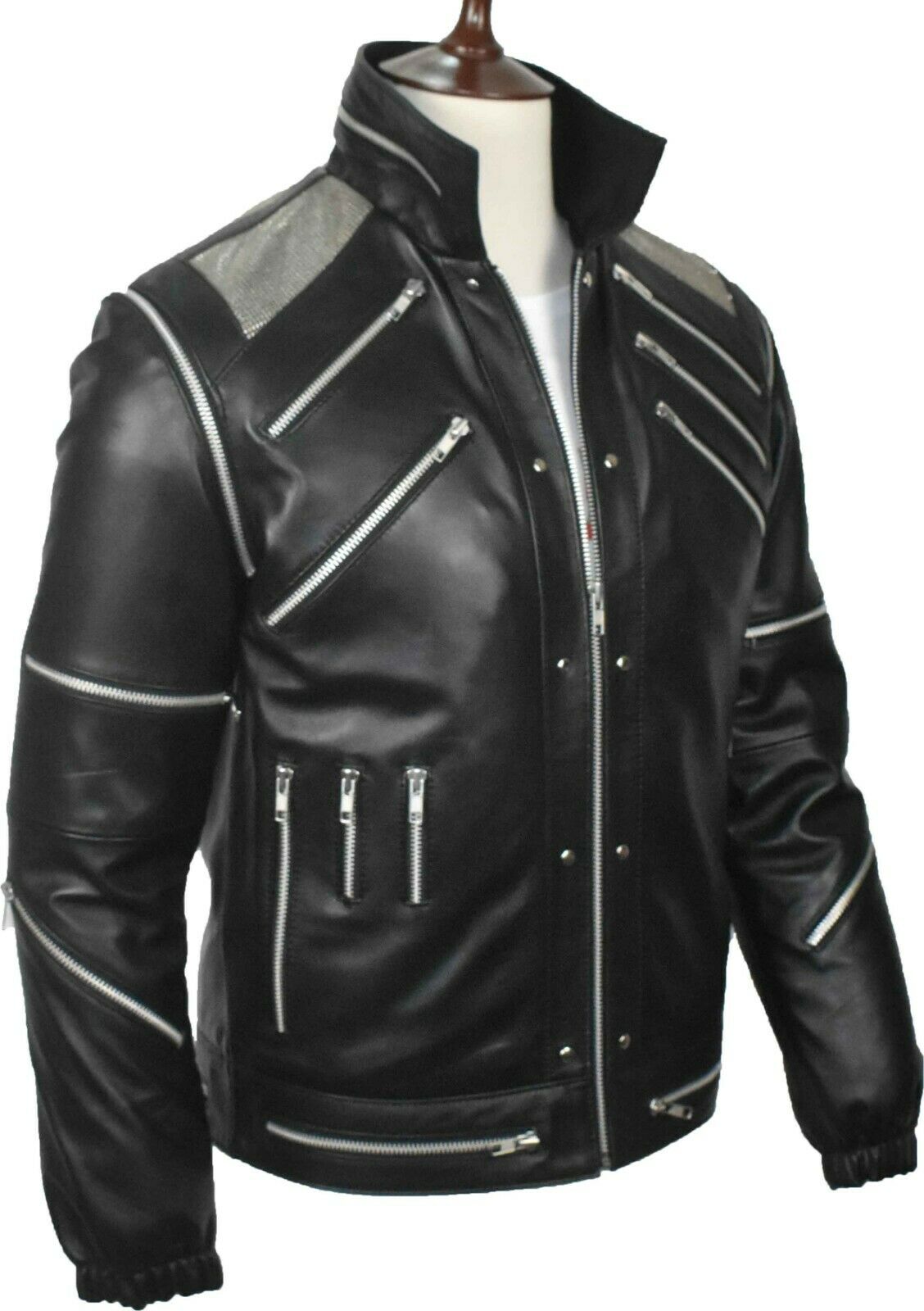 Own a piece of pop culture history with the Michael Jackson Beat It Black Leather Jacket, inspired by the King of Pop’s legendary style. Crafted from premium leather, this black leather jacket captures the bold energy and charisma of Michael Jackson himself. Designed for comfort and statement-making style, this mens black leather jacket is perfect for fans and fashion enthusiasts who want to relive an iconic era with timeless confidence.