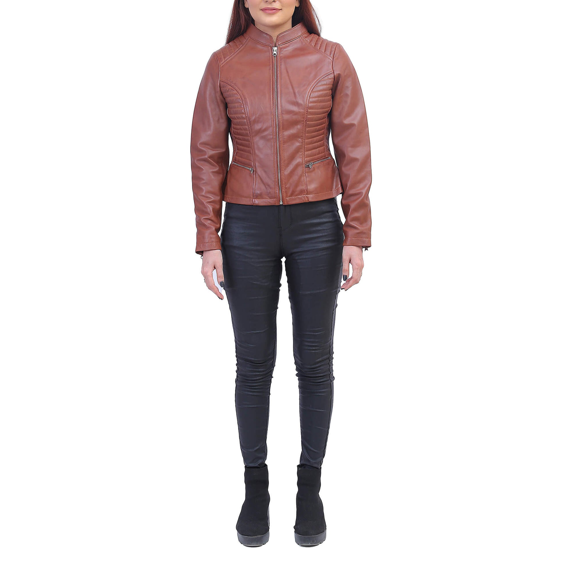 Women’s Padded Brown Leather Jacket | Women Brown Jackets
