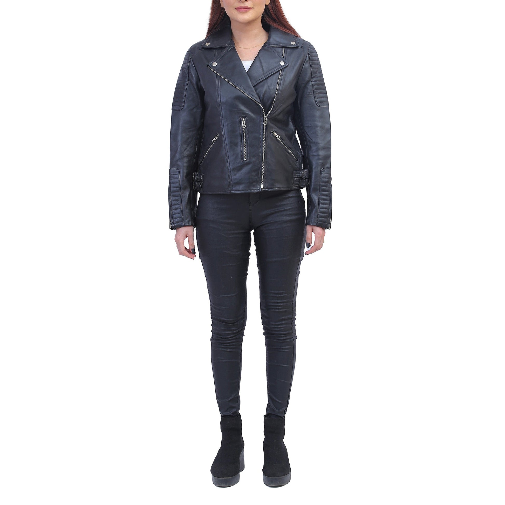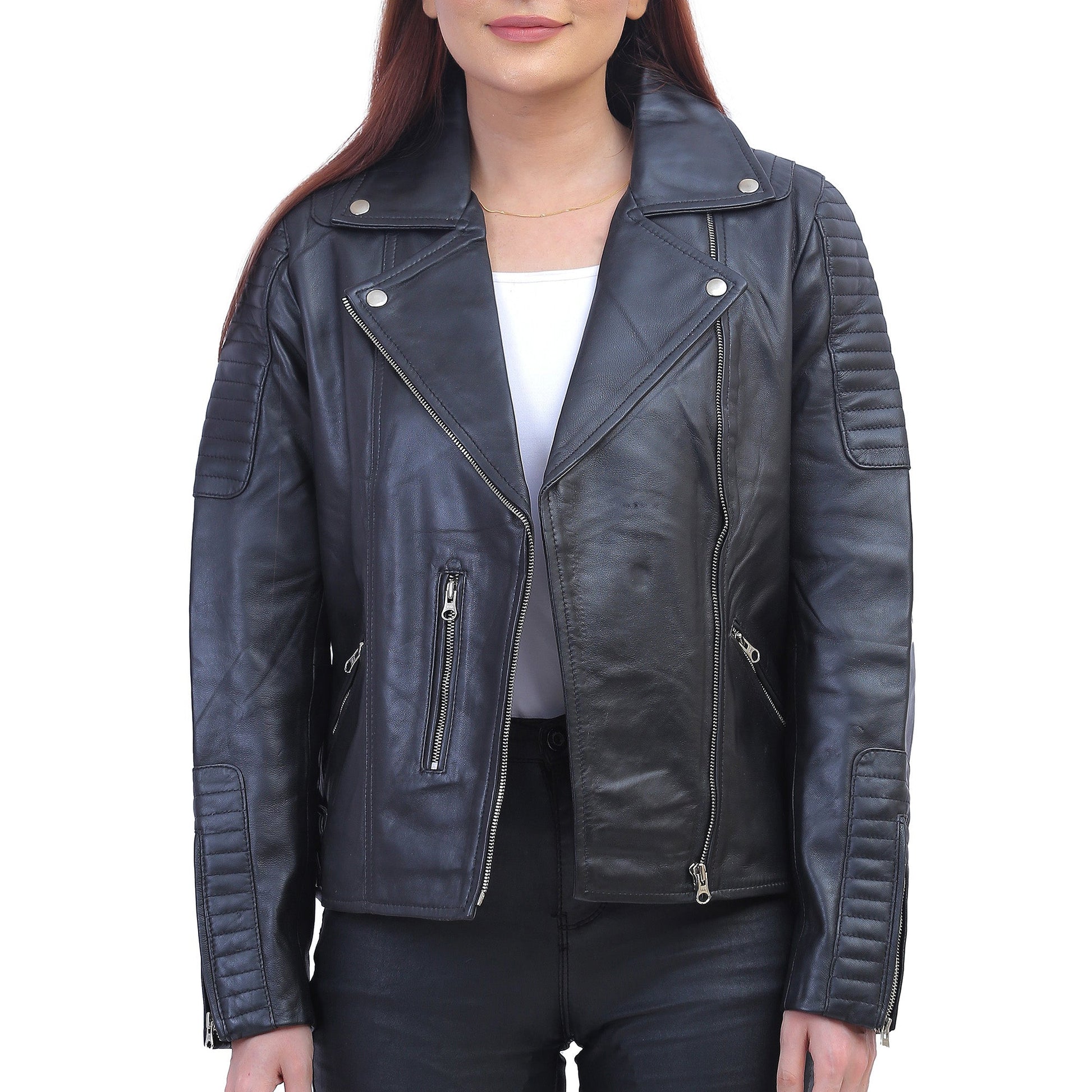 Introducing our Asymmetrical Black Motorcycle Jacket for Women, the epitome of edgy sophistication and sleek style. This jacket redefines fashion with its unique asymmetrical design, ensuring you make a bold statement wherever you go: